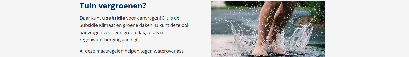 - Subsidie Klimaat & Groene daken: vergoeding tot €500 voor vergroening van tuin of dak.